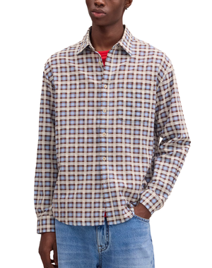 Check patterned shirt made from organic cotton in a lightweight Leno weave structure with a soft handfeel and mesh-like appearance. Finished with a patch pocket and corozo NN.07 buttons.